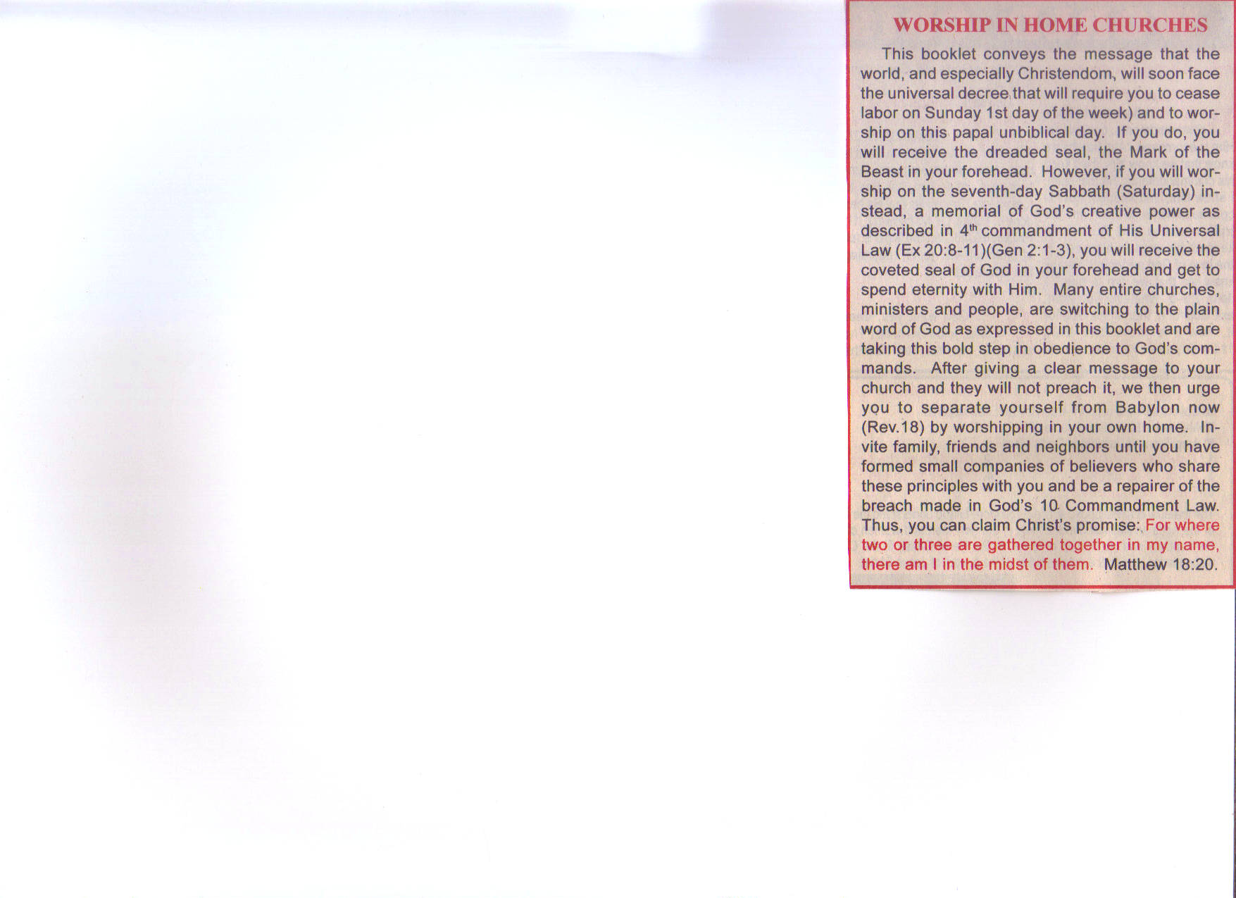 WITH an earthy friend we make connection with a look for a touch. With Jesus we make union with our thoughts. You believe God’s Word. You believe with the heart. See Romans 10:10. “So then faith cometh by hearing, and hearing by the word of God” (Romans 10:17). Then the faith of Jesus comes by studying God’s Word. See Revelation 14:12. We must study to show ourselves approved unto God, and then obey present truth. See 2 Timothy 2:15. Then that Word (in your heart) begins the new life which is the “new birth”. See 1 Peter 1:23. Then, keep drinking the milk of the Word, and so, “grow”. See 1 Peter 2:2. DO NOT WAIT FOR SOME FEELING. TAKE GOD AT HIS WORD, NO MATTER HOW YOU FEEL.